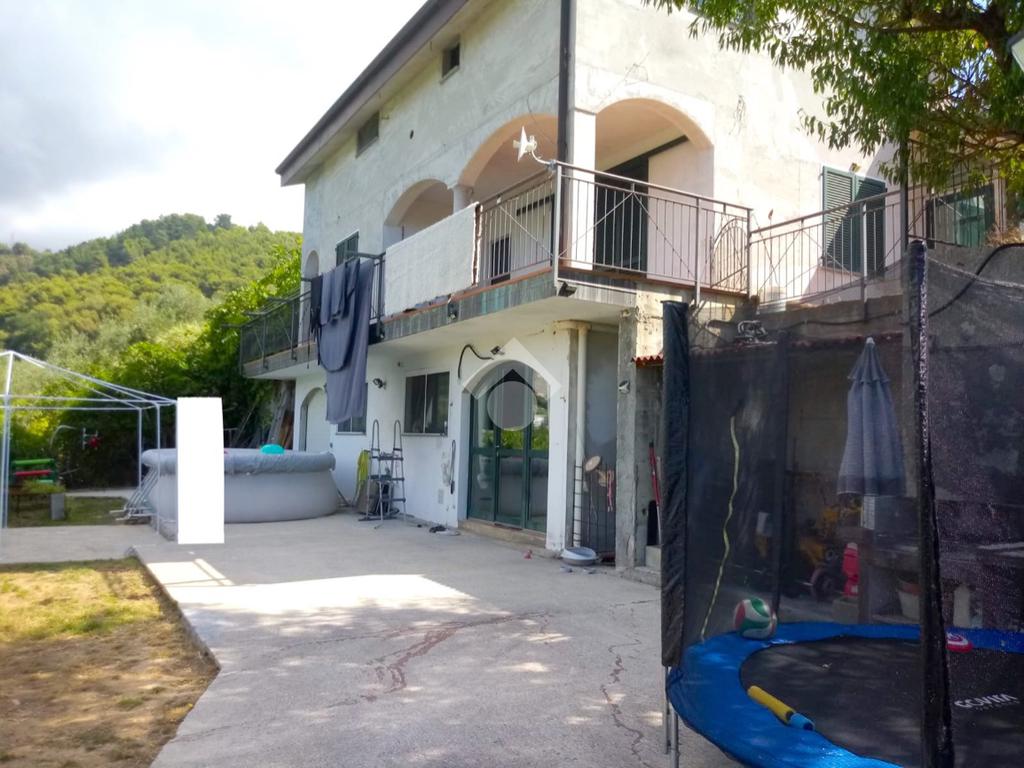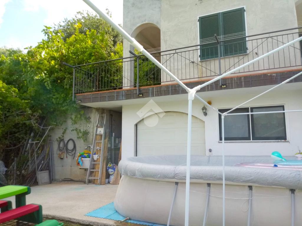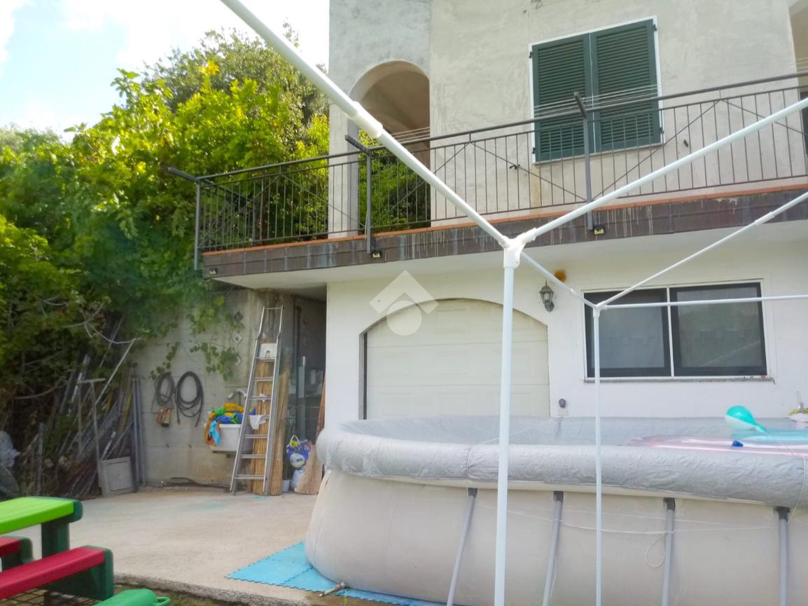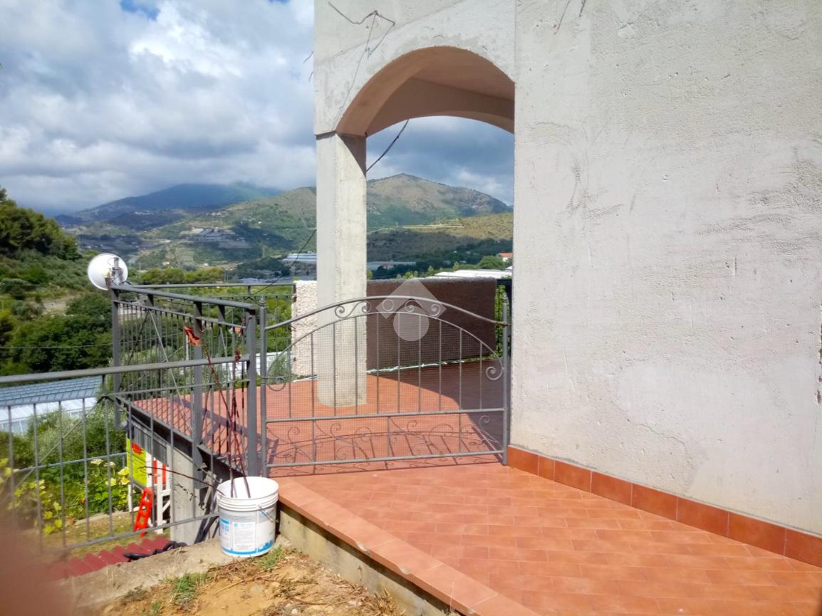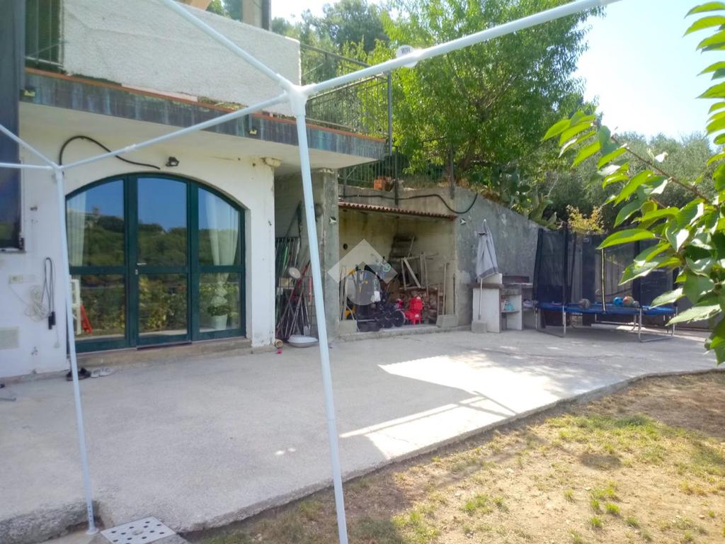 Bussana Nuova. A pochi minuti col mezzo dal centro abitato, proponiamo in esclusiva : ' Villa su più livelli ' in contesto riservato, silensioso ed immerso nel verde. L'immobile, circondato da 3000 mq di terreno, vede il suo accesso principale al piano terreno, esternamente troviamo un ampio cortile con la possibilità di mettere una piscina, una zona attrezzi, un piccolo orticello già predisposto, nonchè l'entrata al doppio box auto. Internamente, abbiamo un doppio salone con angolo cottura, un primo bagno ed una porta dalla quale si può accedere dall'interno al doppio box auto. Dal doppio salone si può salire al livello superiore tramite una splendida scala in vetro rinforzato, realizzata da uno specialista del settore. Al secondo livello troviamo un secondo salotto che può prestarsi anche a camera matrimoniale, proseguendo vi è una piccola zona divisoria che si ramifica dividendosi tra il secondo bagno ed altre 2 camere matrimoniali, per finire c'è una porta di servizio che conduce alla terrazza esterna. La terrazza è angolare sui 3 lati della villa, ha un'ottima esposizione solare e nella zona più centrale, si ampia diventando comoda e soggiornabile, in oltre si può accedere alla terrazza anche passando da un cancelletto che rimane allo stesso livello della suddetta. Per accedere all'ultimo livello della villa, bisogna necessariamente passare tramite una seconda entrata che rimane separata dal resto del contesto, salendo l'apposita scala, troviamo l'accesso a 2 mansarde speculari tra loro, adibite come 2 veri e propri appartamentini. Ambedue comprendono una piccola zona ingresso, un bagno, un salotto ed una camera da letto, in oltre dinnanzi all'entrata vi sono diversi posti auto sfruttabili.